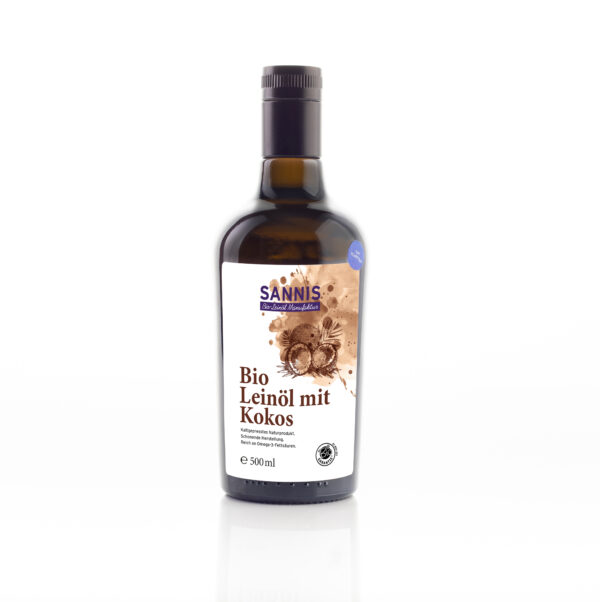 Die Kombination aus SANNIS Bio-Leinöl und Bio-Kokos schmeckt exotisch und fein und wird bewusst nicht gefiltert. Filtern würde die Qualität beeinträchtigen. Empfehlenswert im Müsli, Topfen und Naturjoghurt.