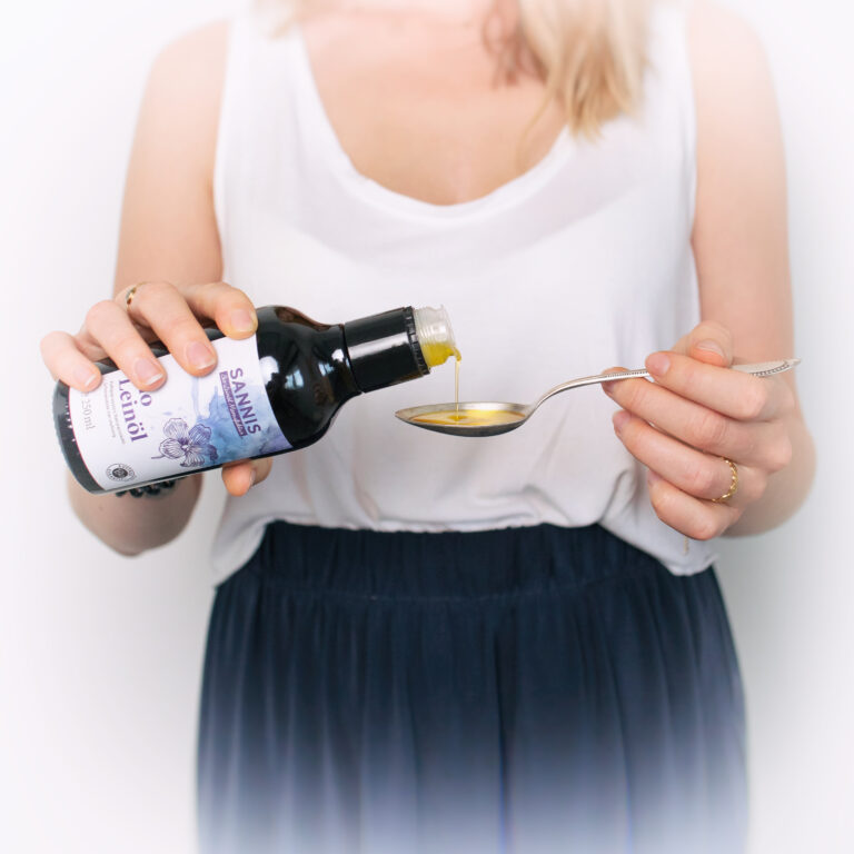 SANNIS Bio-Leinöle nur kalt genießen. Da es sich um ein Frische-Produkt handelt, im Glas nicht länger als drei Monate trocken aufbewahren – am besten lichtgeschützt und im Kühlschrank.